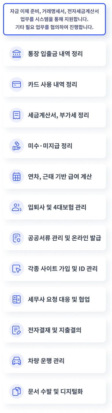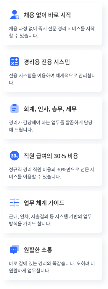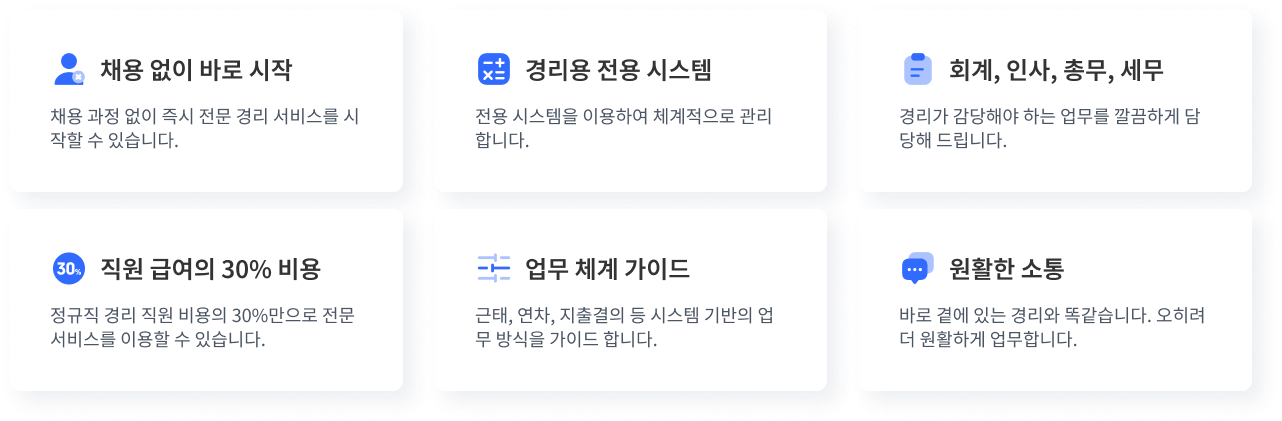 채용 없이, 교육 없이, 바로 시작하는 전문 경리 서비스