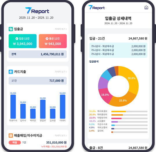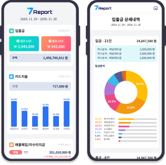 탄탄경리의 '7리포트'로 매일 자금 흐름을 쉽게 확인할 수 있습니다.