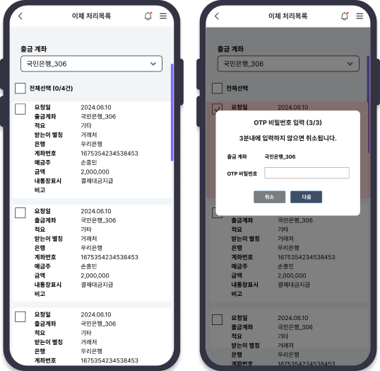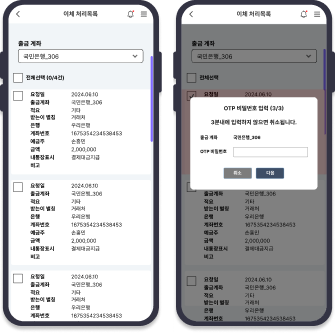 OTP는 이체를 실행할 권한자만 가지고 있어야 합니다.
