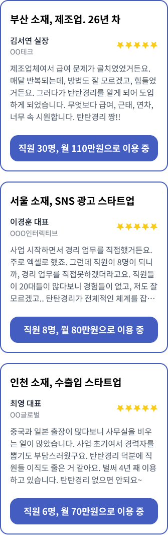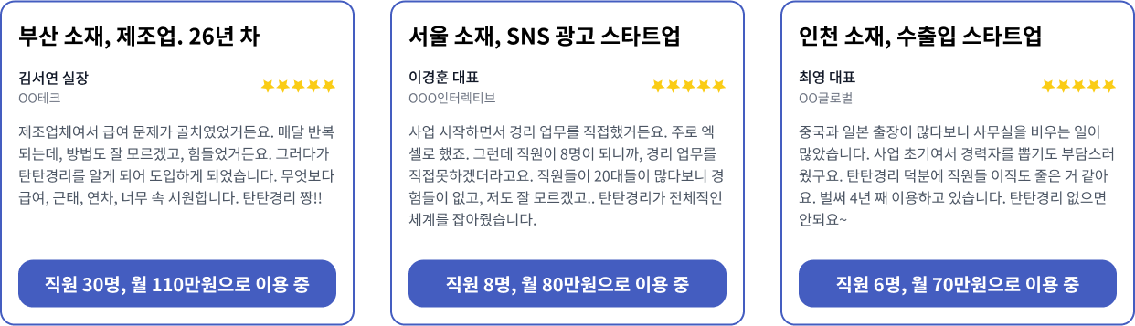 탄탄경리 서비스를 이용하고 계신 고객들의 생생한 후기를 확인해보세요.