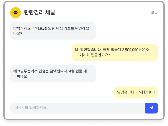 카카오톡으로 전담 경리와 실시간 소통하세요. 작은 요청도 바로 응답하고, 상황을 실시간으로 공유합니다.